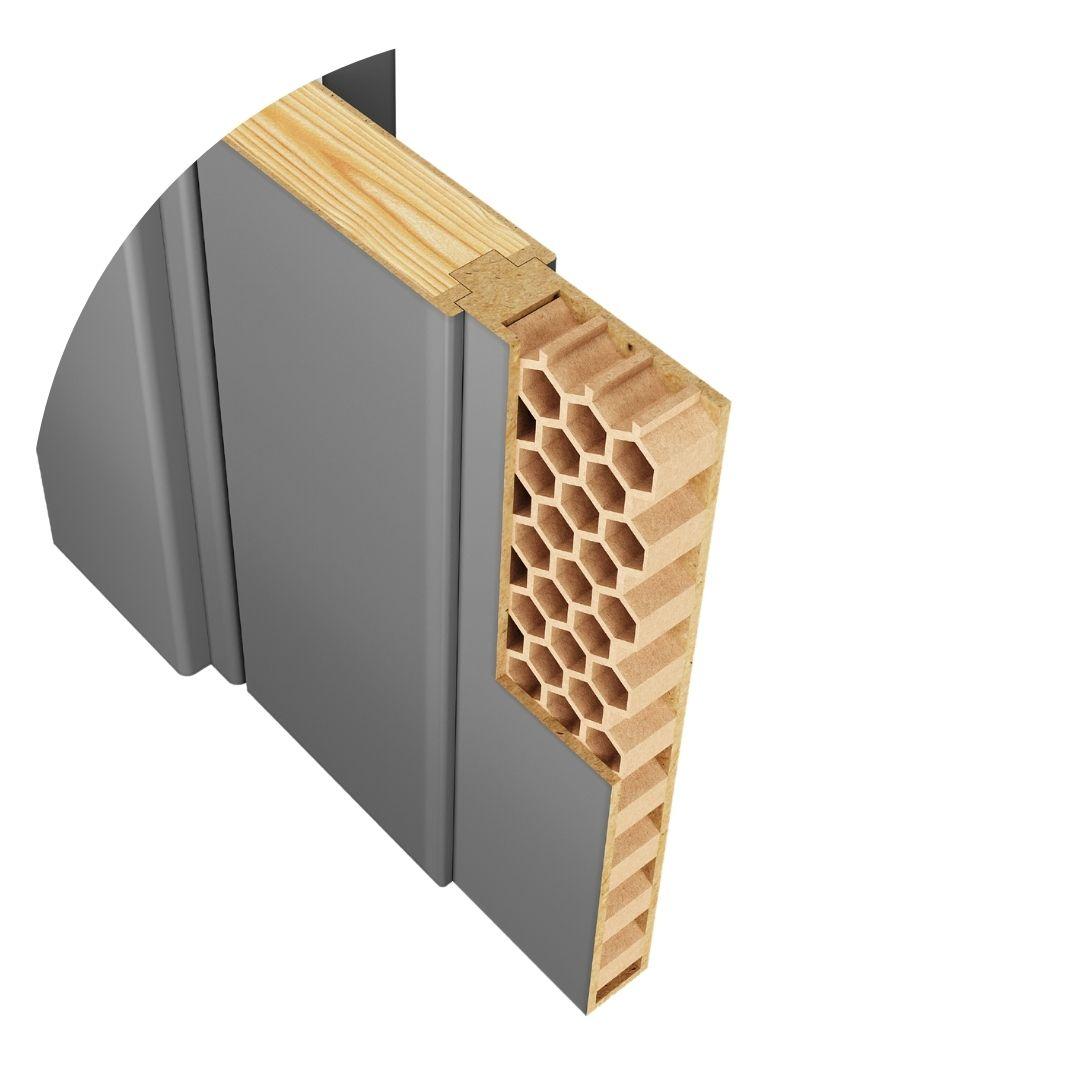 Durvju vērtne pārklāta ar Nano Flex dekoratīvo pārklājumu, kas 3D efektā imitē dabīgā koka tekstūru – to var gan redzēt, gan sajust pieskaroties. Atšķirībā no tradicionālām gludām virsmām, šīs durvis piešķir telpai siltumu un faktūru, saglabājot tajā pašā laikā vieglu kopšanu un augstu izturību.