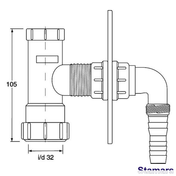 Savienojums ar gaisa vārstu veļas mašīnai vai trauku mazgājamai mašīnai. 32 mm izeja un 40 mm izeja.
