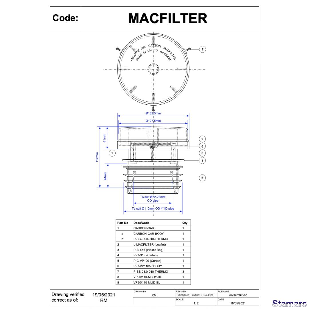 MACFILTER ir piemērots caurulēm ar diametru 75 mm un 110 mm, padarot to par universālu risinājumu gan mājsaimniecībām, gan industriālām instalācijām. To var uzstādīt vertikāli, horizontāli vai slīpi, tāpēc filtrs viegli pielāgojams esošajai sistēmai neatkarīgi no tās konfigurācijas.