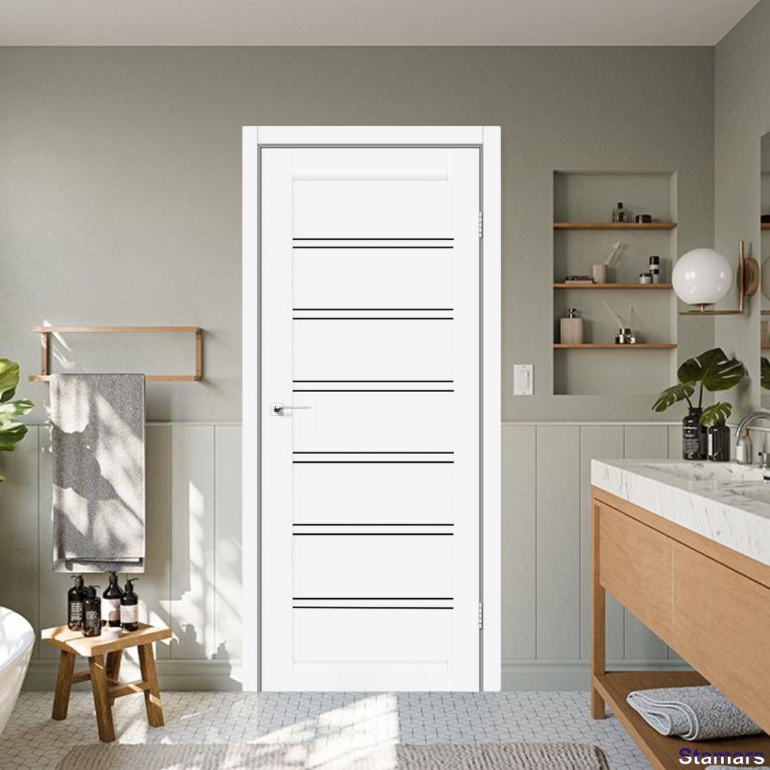 Polipropilēna durvis ir ne tikai videi draudzīgs, bet arī izturīgs un viegli kopjams. Tā ir ideāla izvēle, ja vēlaties apvienot ilgtspējību un augstu kvalitāti. Turklāt durvis papildinātas ar stilīgiem melniem stikla ieliktņiem, kas ienesīs gaismu un eleganci jebkurā telpā.